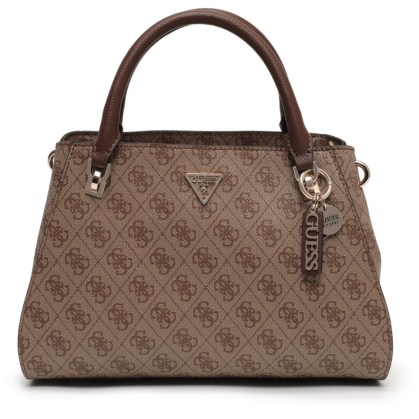 Сумка с короткими ручками Guess Noelle HWBG96 72070_latte logo/brown_pc - 2000558776783 бежевый полиуретан 32 x 20,5 x 12 Цена 12900 руб. купить в интернет-магазине PanChemodan.ru в Москве